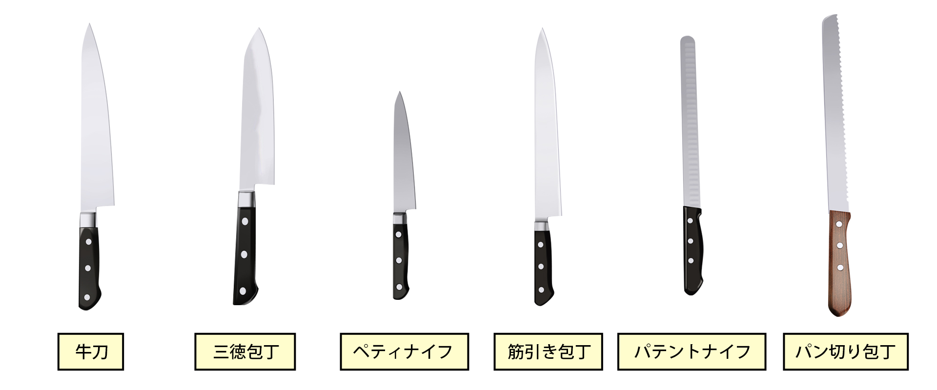 2.薄刃包丁 3.三徳包丁 4.牛刃 |