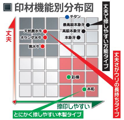 貴重な象牙を使用しており、他の印材と比較すると大変高価ではありますが、使い勝手がよく、耐久性に優れています。