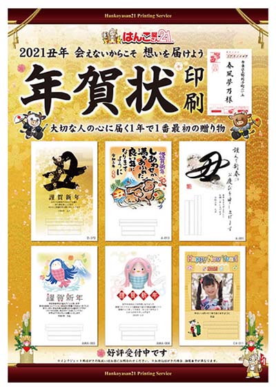 お年玉付き年賀はがきは、当店でご用意できますので、店頭でデザインを選んで、差出人情報を記入して頂ければ、簡単に年賀状が作成できます。