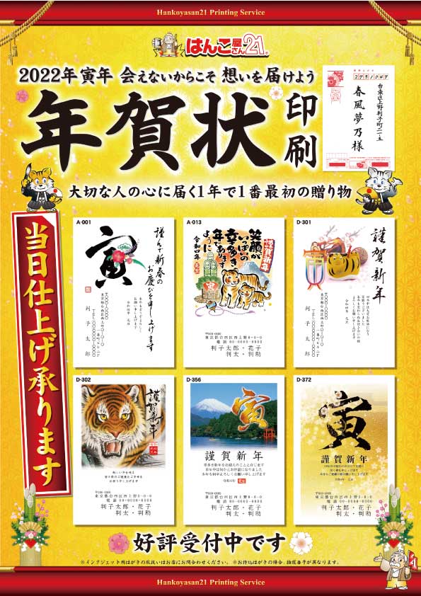 年賀状の特急仕上げの当日仕上げ、翌日仕上げ、承ります。